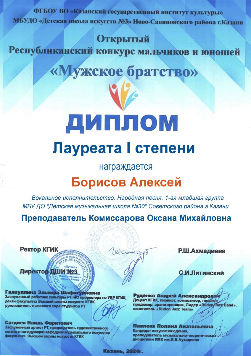 Республиканский детский фестиваль народного творчества "Без бергә" - Борисов Алексей - диплом I степени
