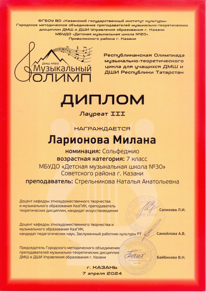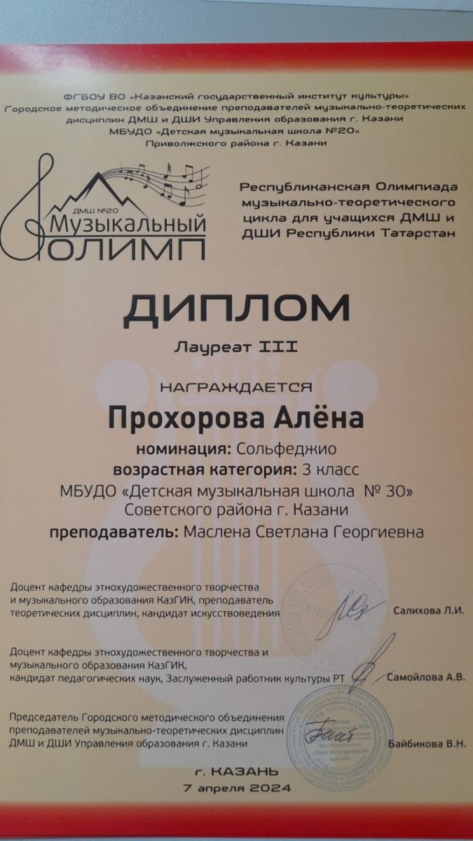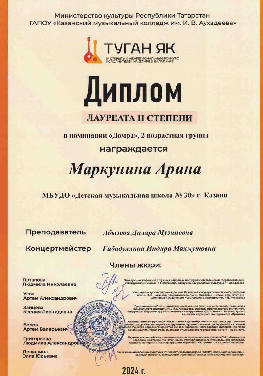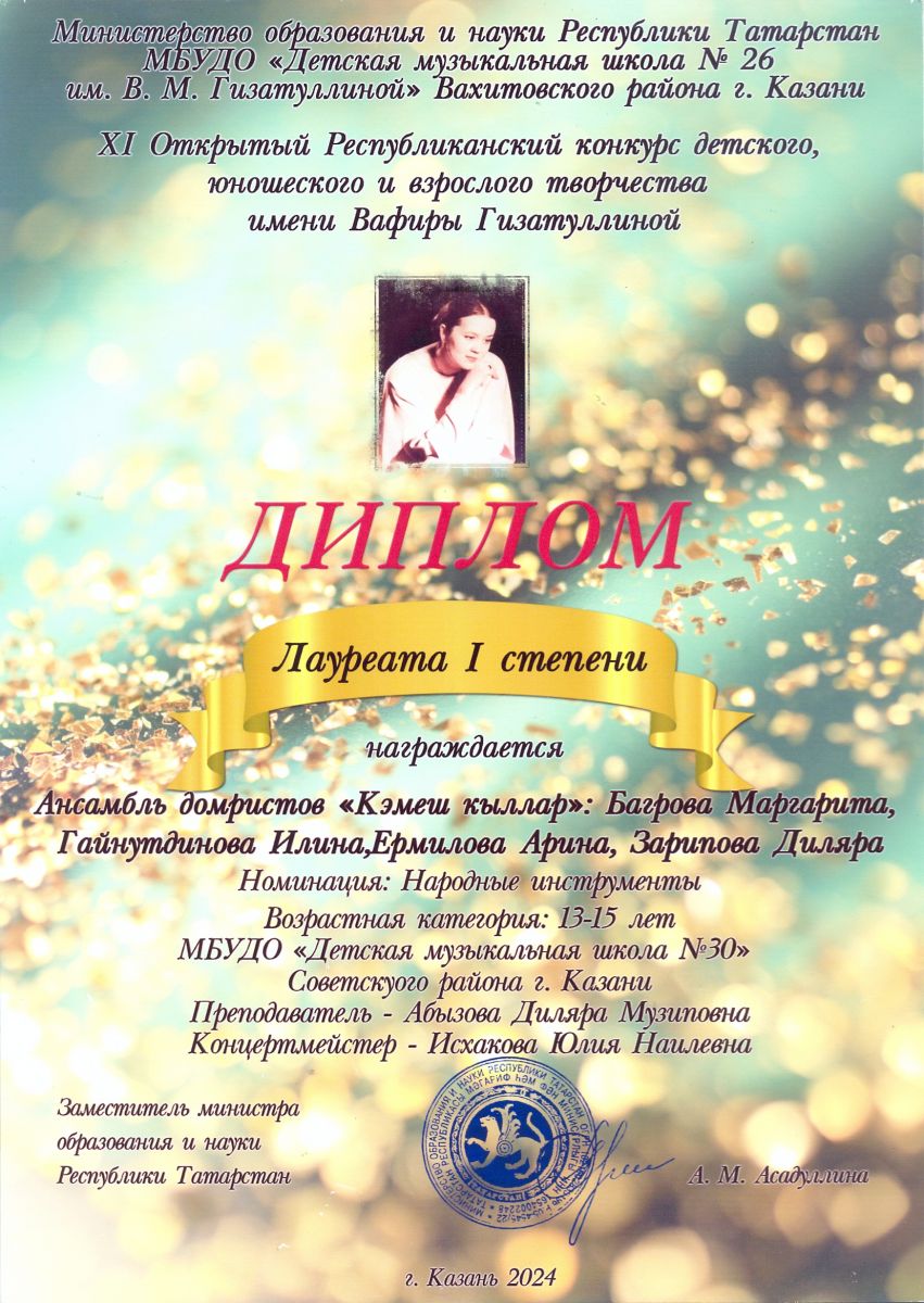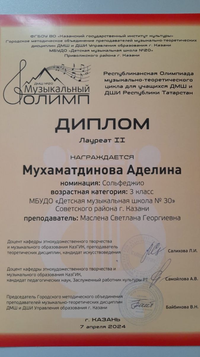 Муниципальное бюджетное учреждение дополнительного образования «Детская музыкальная школа №30» Советского района г.Казани