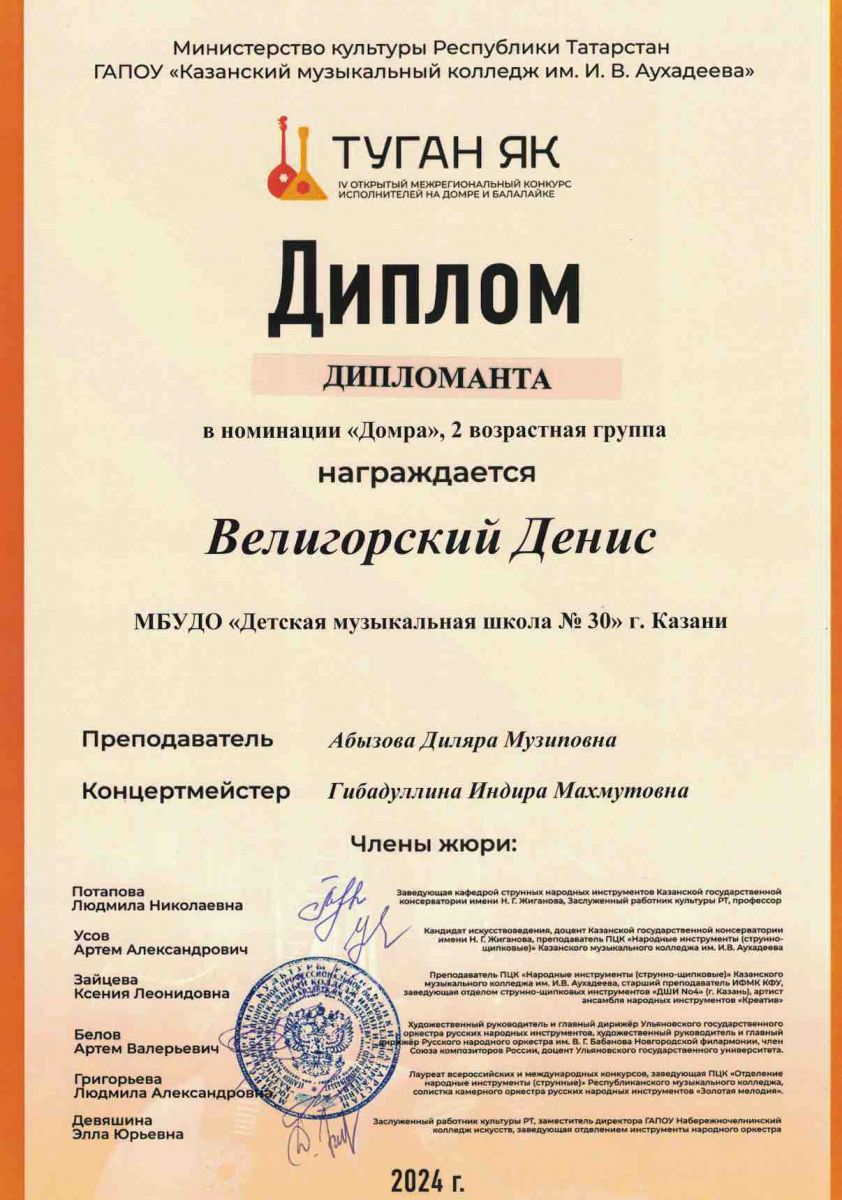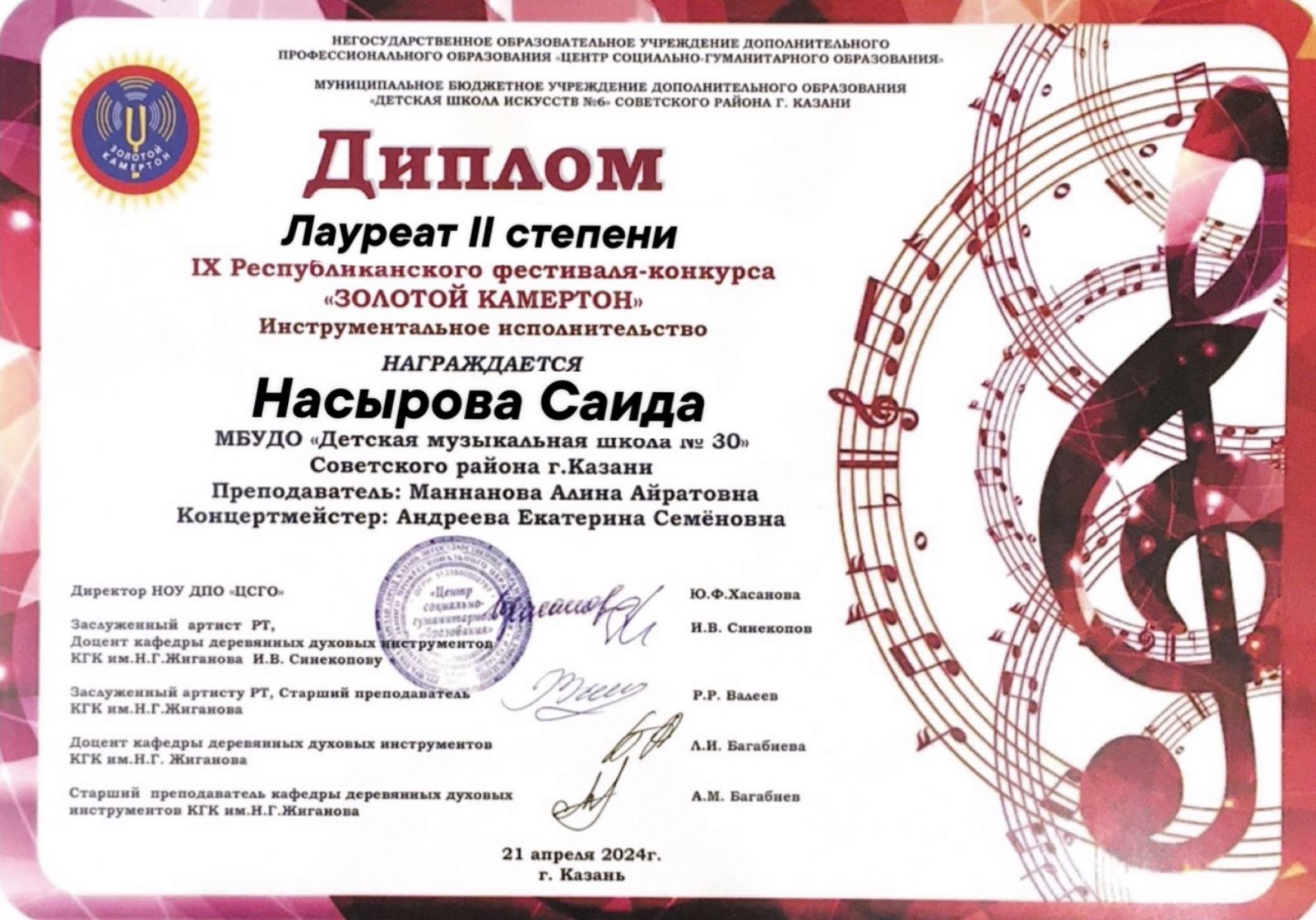 2024 год Межрегиональные и республиканские конкурсы и фестивали