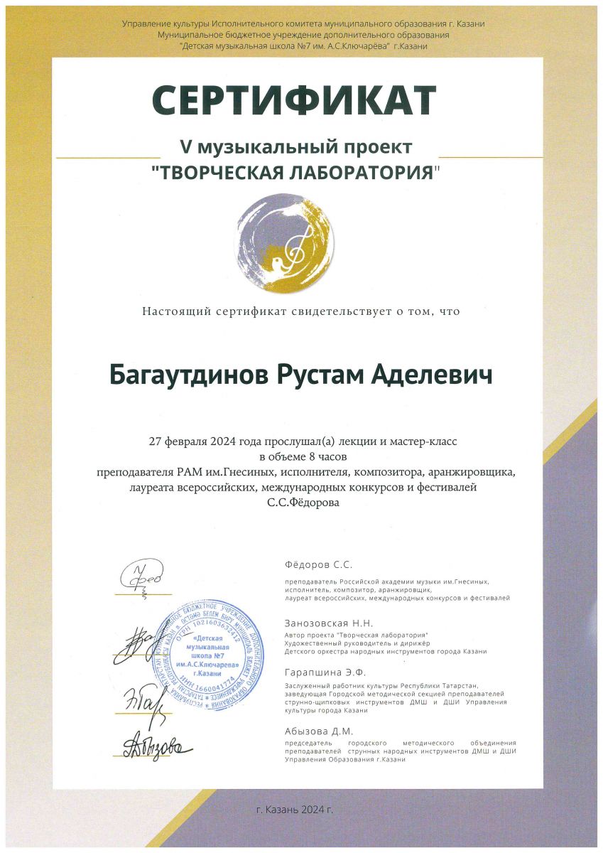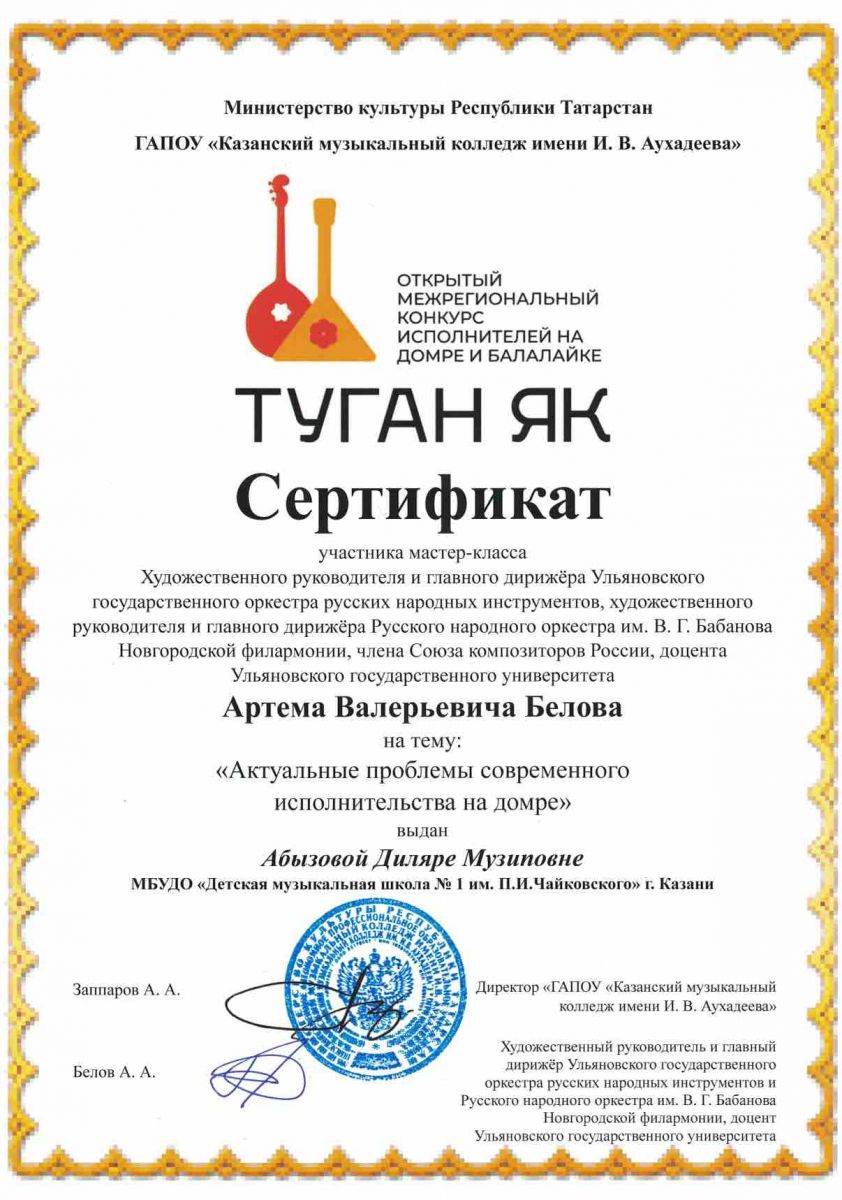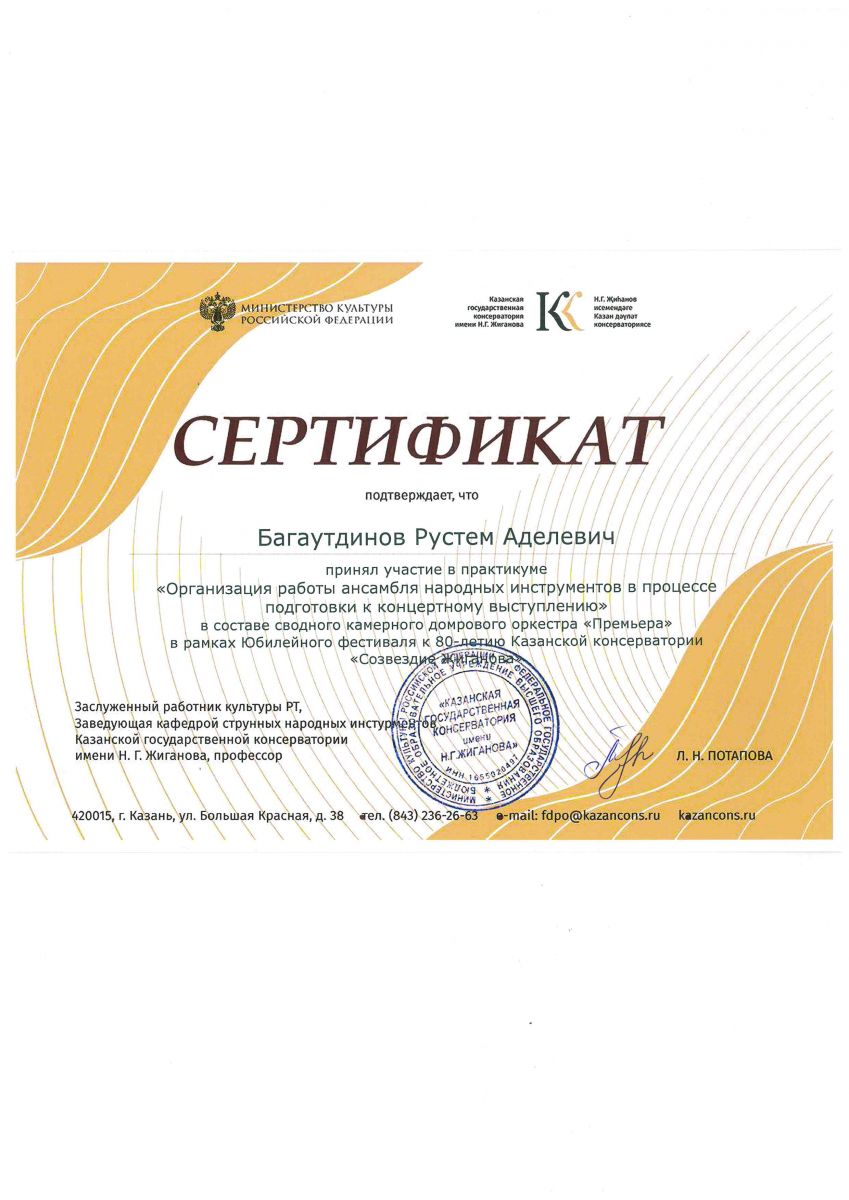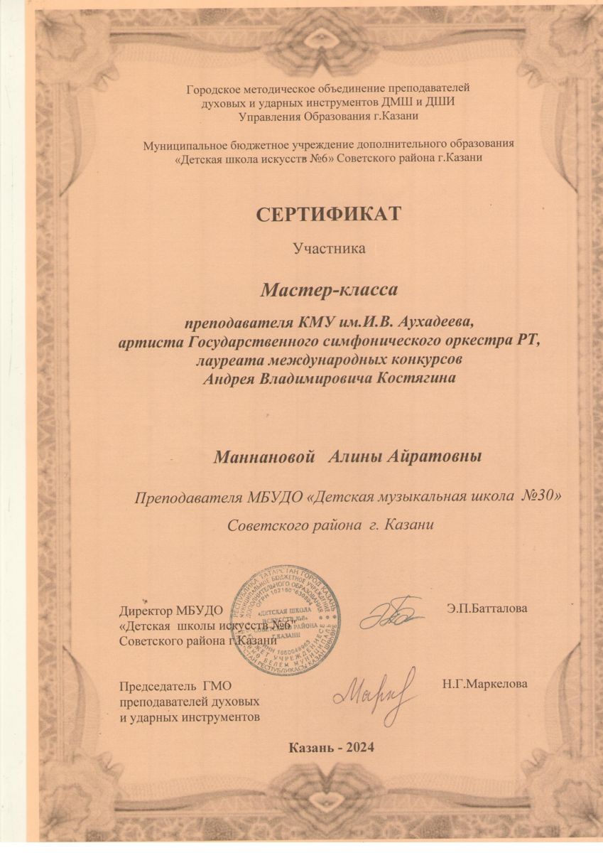 Мастер-класс преподавателя КМК им.И.Аухадеева Костягина А.В. - Маннанова А.А. - сертификат участника