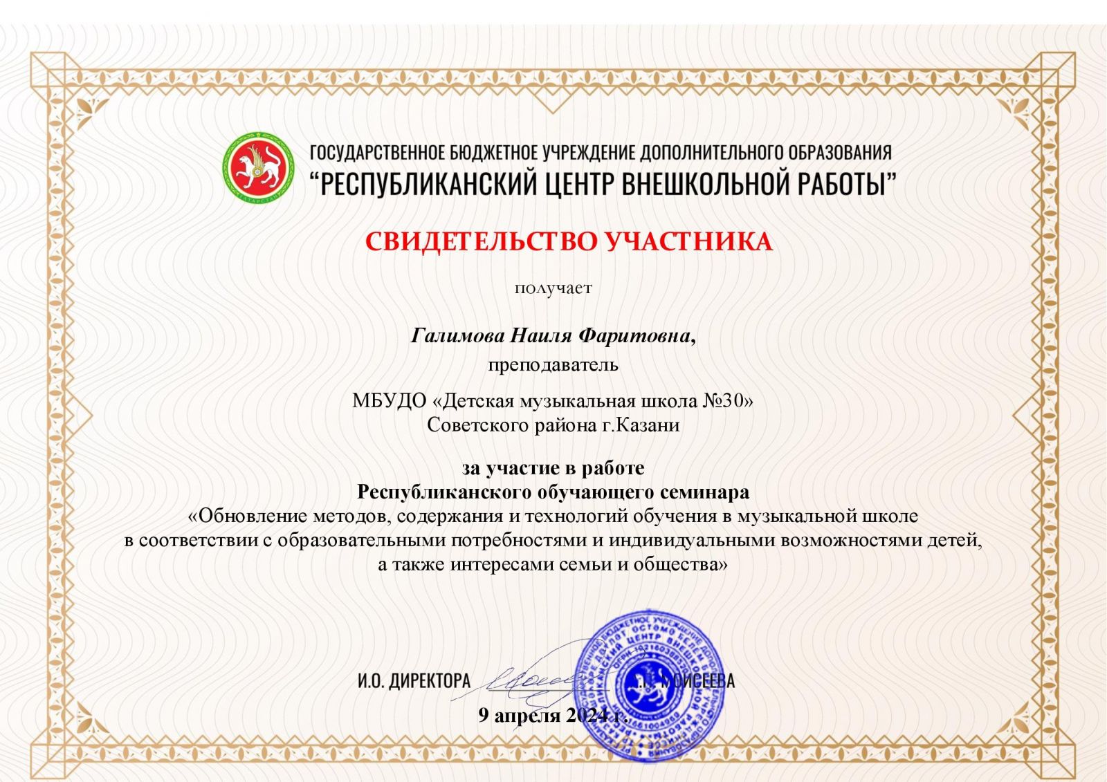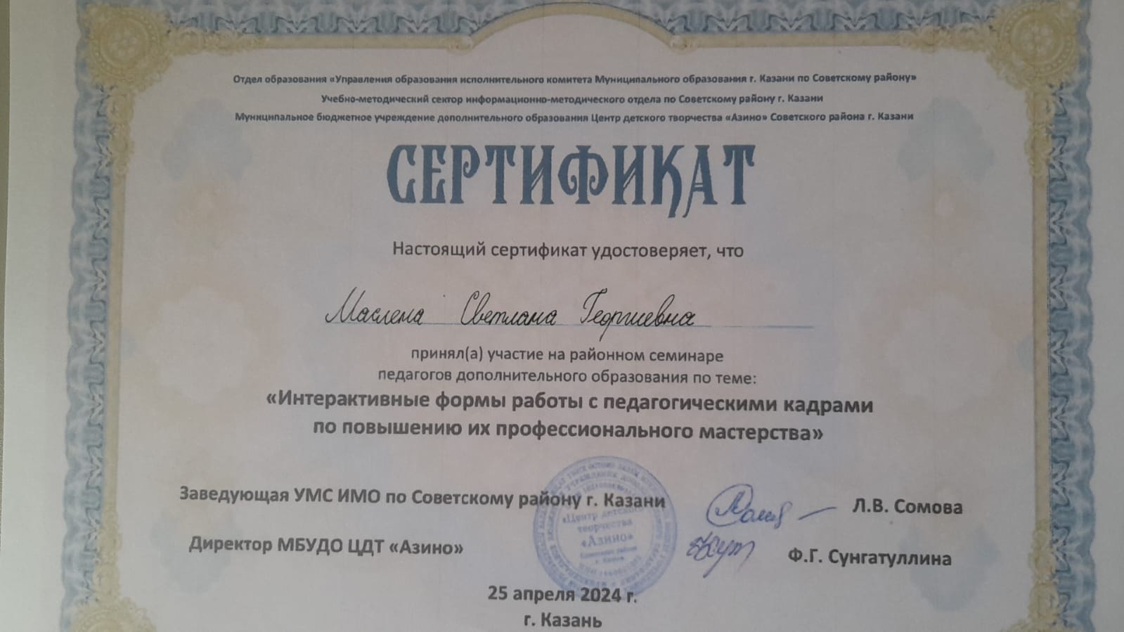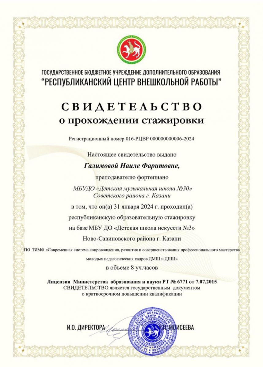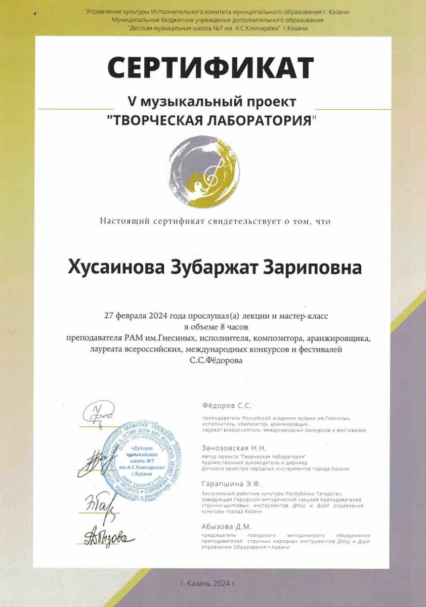 Мастер-класс преподавателя КМК им.И.Аухадеева Костягина А.В. - Маннанова А.А. - сертификат участника