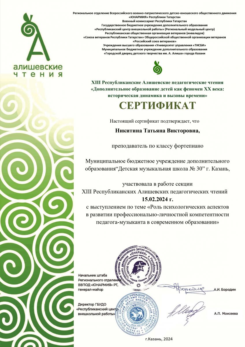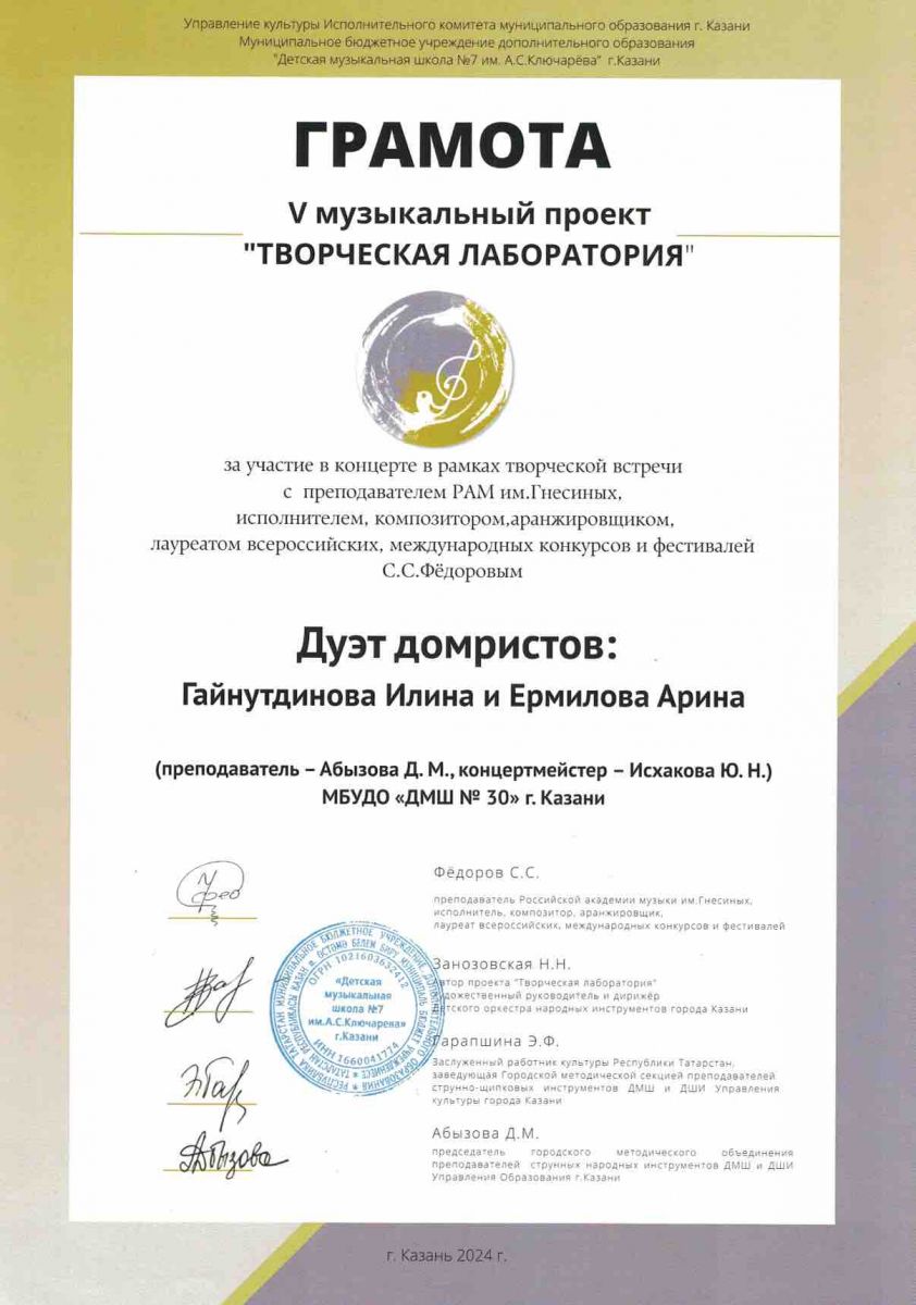Муниципальное бюджетное учреждение дополнительного образования «Детская музыкальная школа №30» Советского района г.Казани