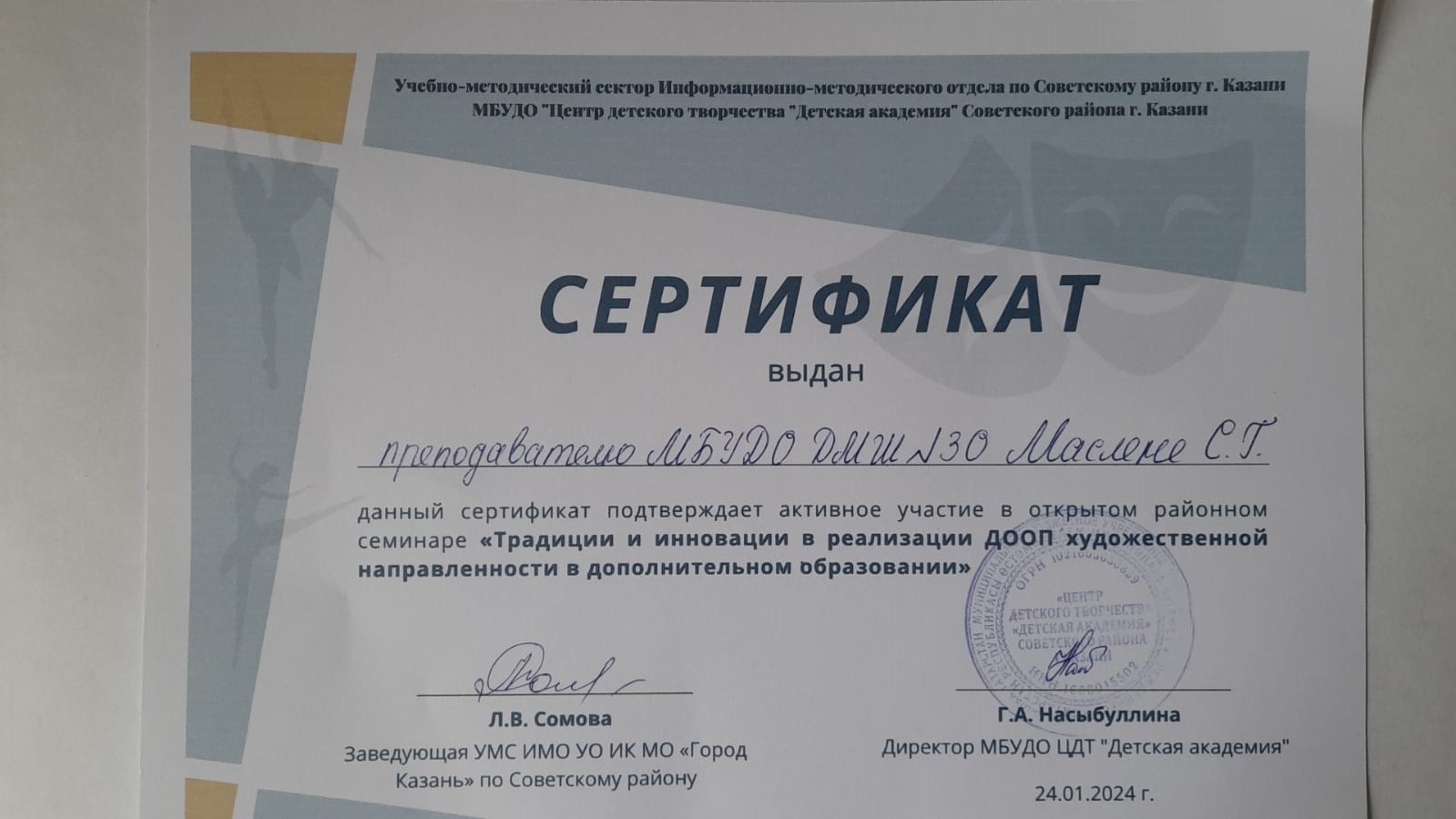 2024 год Участие в семинарах и конференциях
