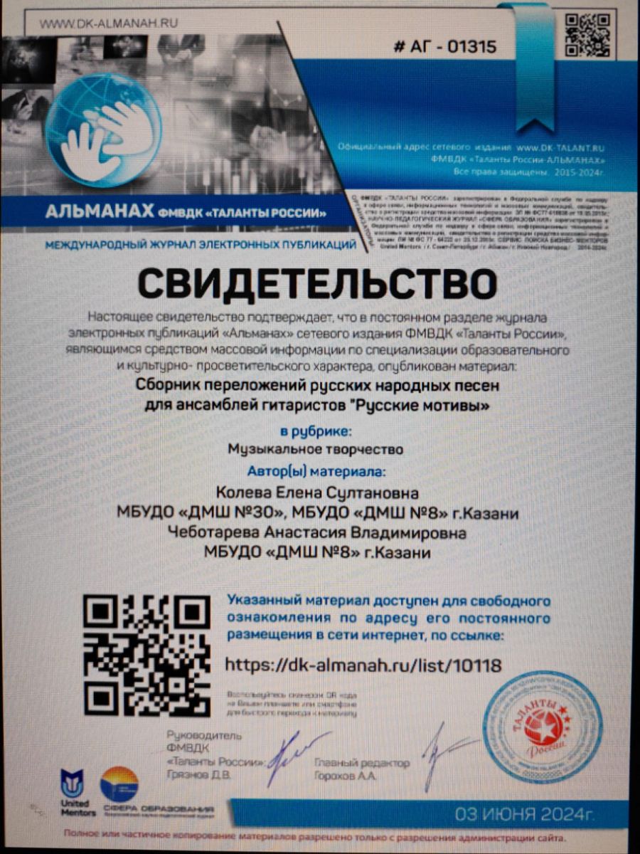 Сайт электронного педагогического журнала МАГАРИФ.РФ - Колева Е.С. - статья "Гитара в наше время"