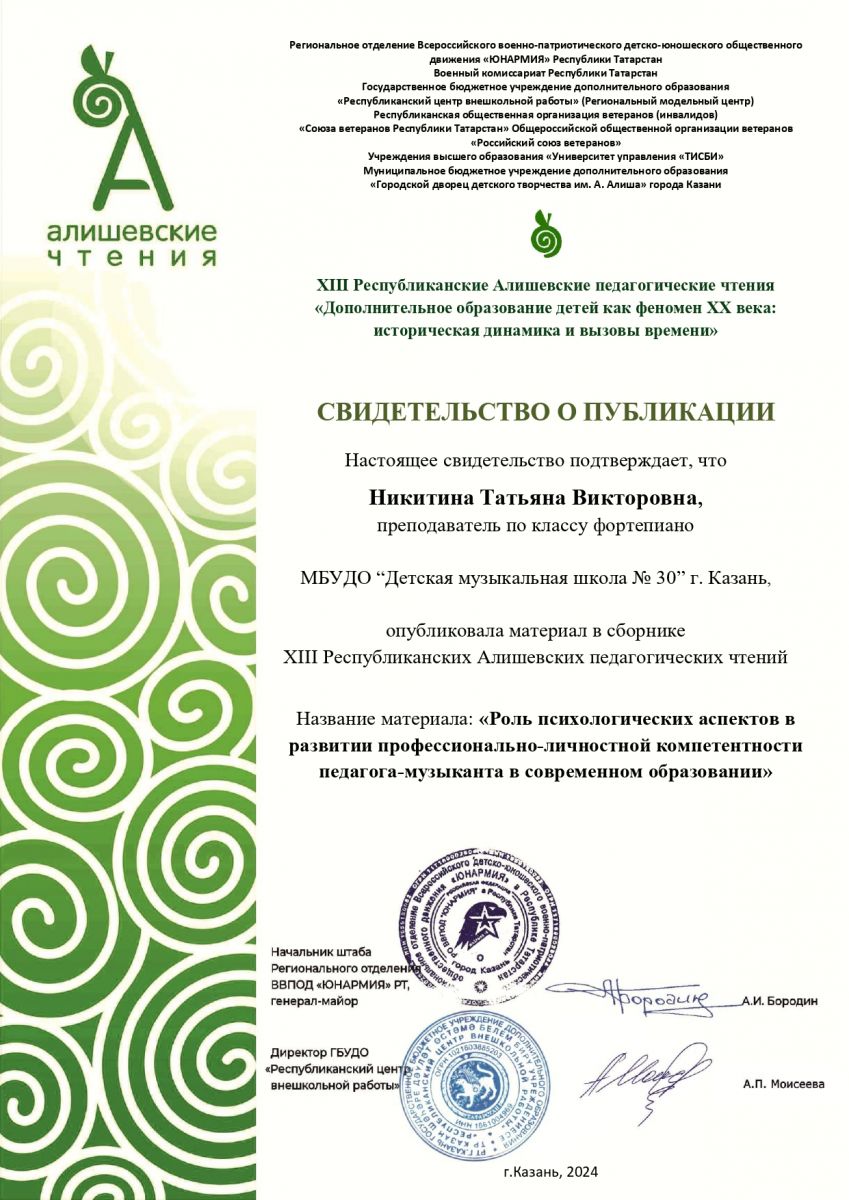 Муниципальное бюджетное учреждение дополнительного образования «Детская музыкальная школа №30» Советского района г.Казани