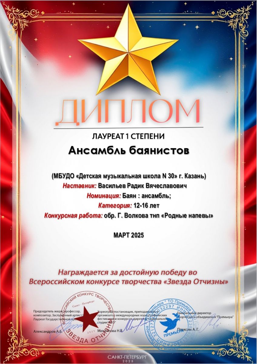 VIII Всероссийский конкурс исполнителей на народных инструментах "Русская палитра" (г.Москва) - учащиеся в составе детского оркестра народных инструментов г.Казани под упр. Занозовских
