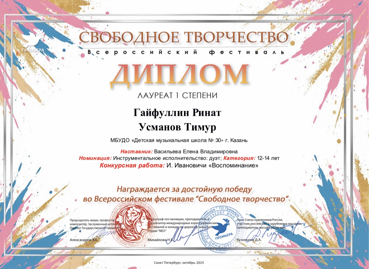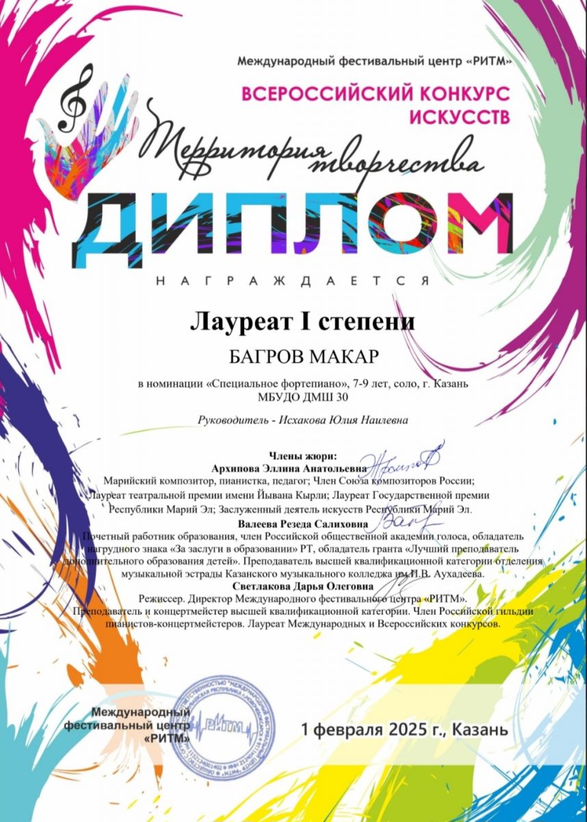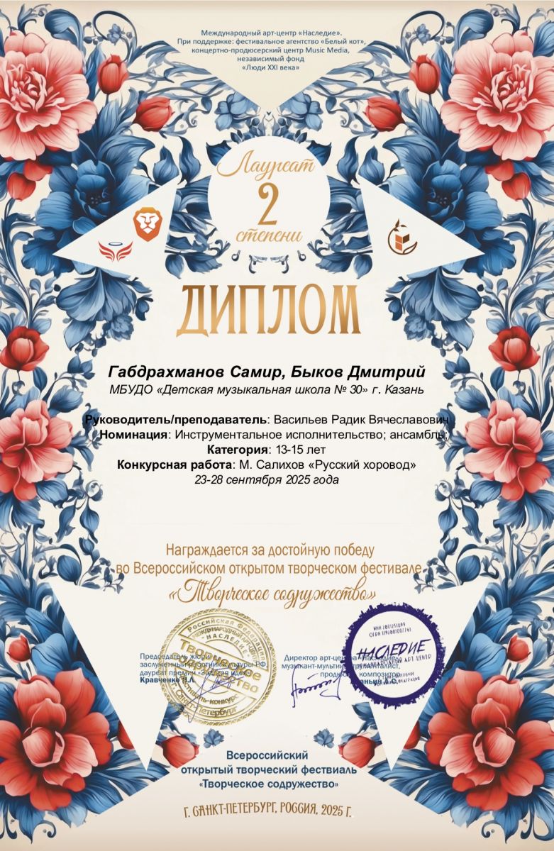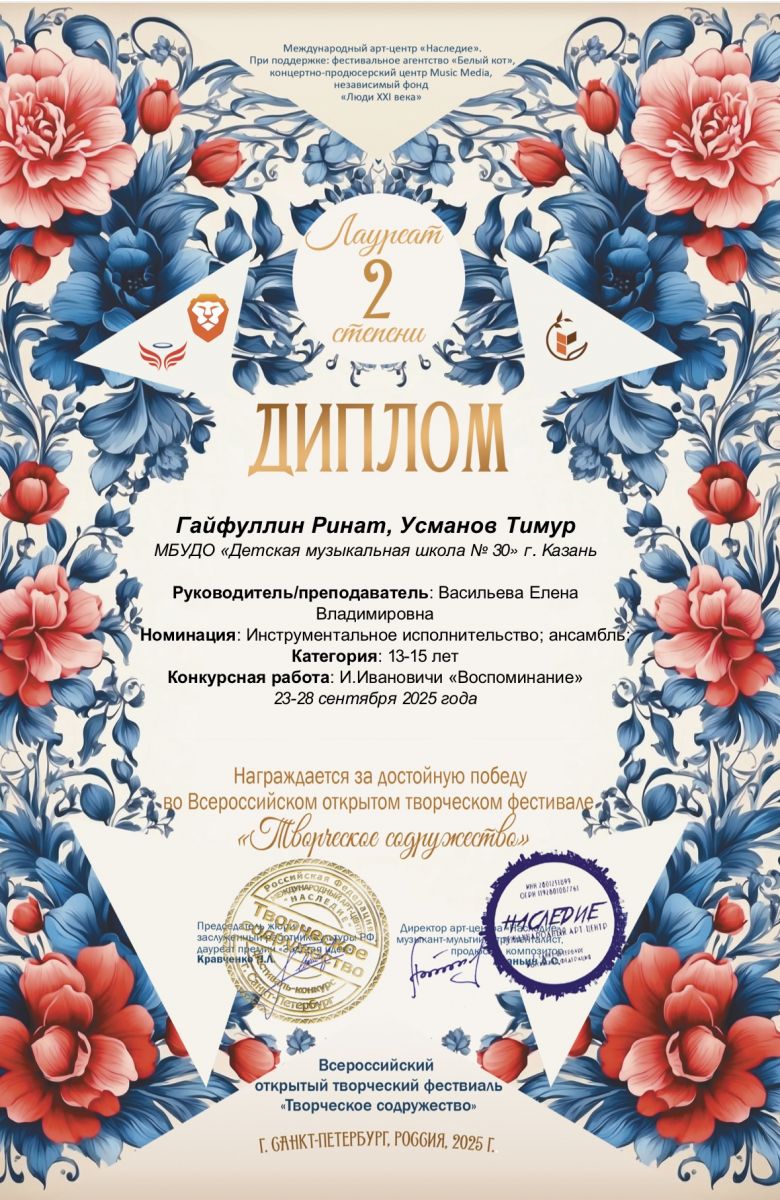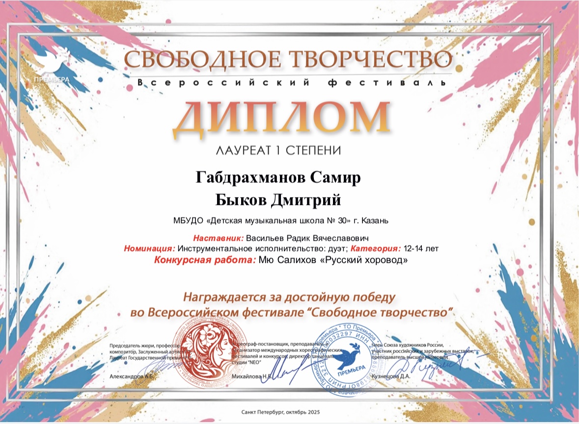 2025 год Всероссийские конкурсы и фестивали