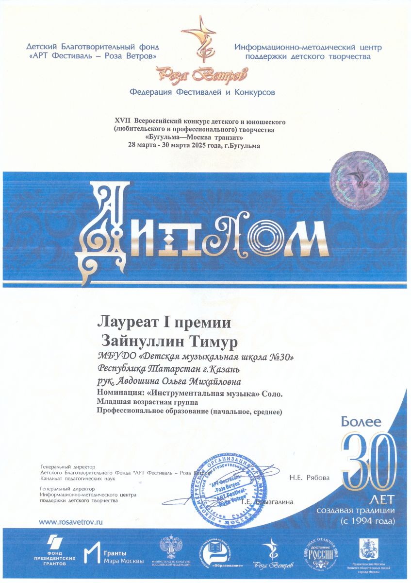 Муниципальное бюджетное учреждение дополнительного образования «Детская музыкальная школа №30» Советского района г.Казани