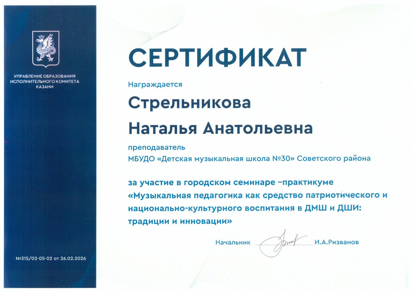 2026 год Участие в семинарах и конференциях