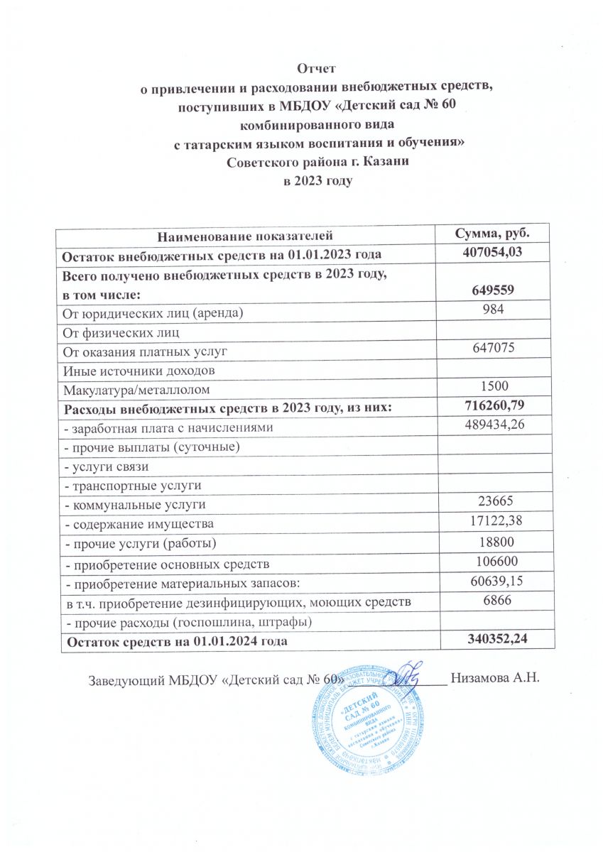 Отчет о привлечении и расходовании внебюджетных средств за 2023 год