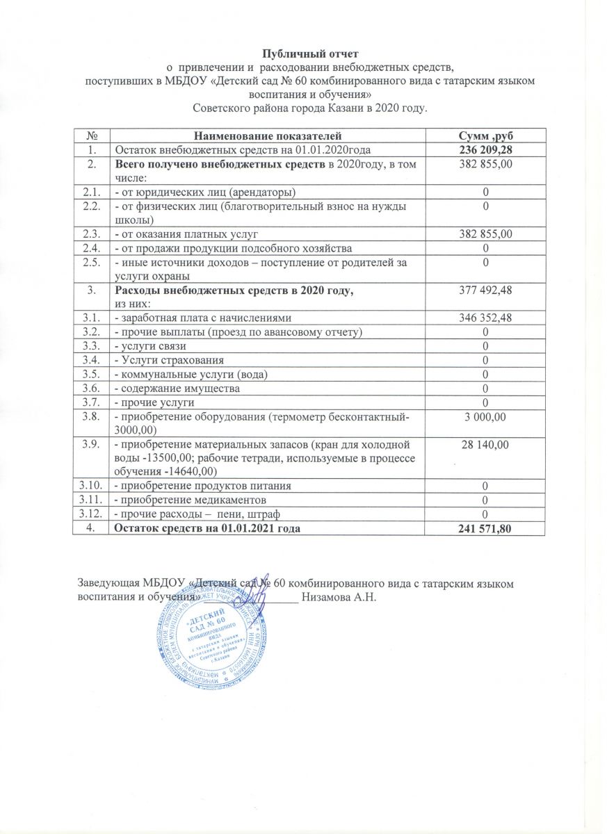 Отчет о привлечении и расходованиии внебюджетных средств за 2020 год