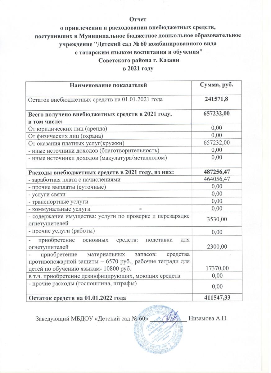 Отчет о привлечении и расходвании внебюджетных средств за 2021 год
