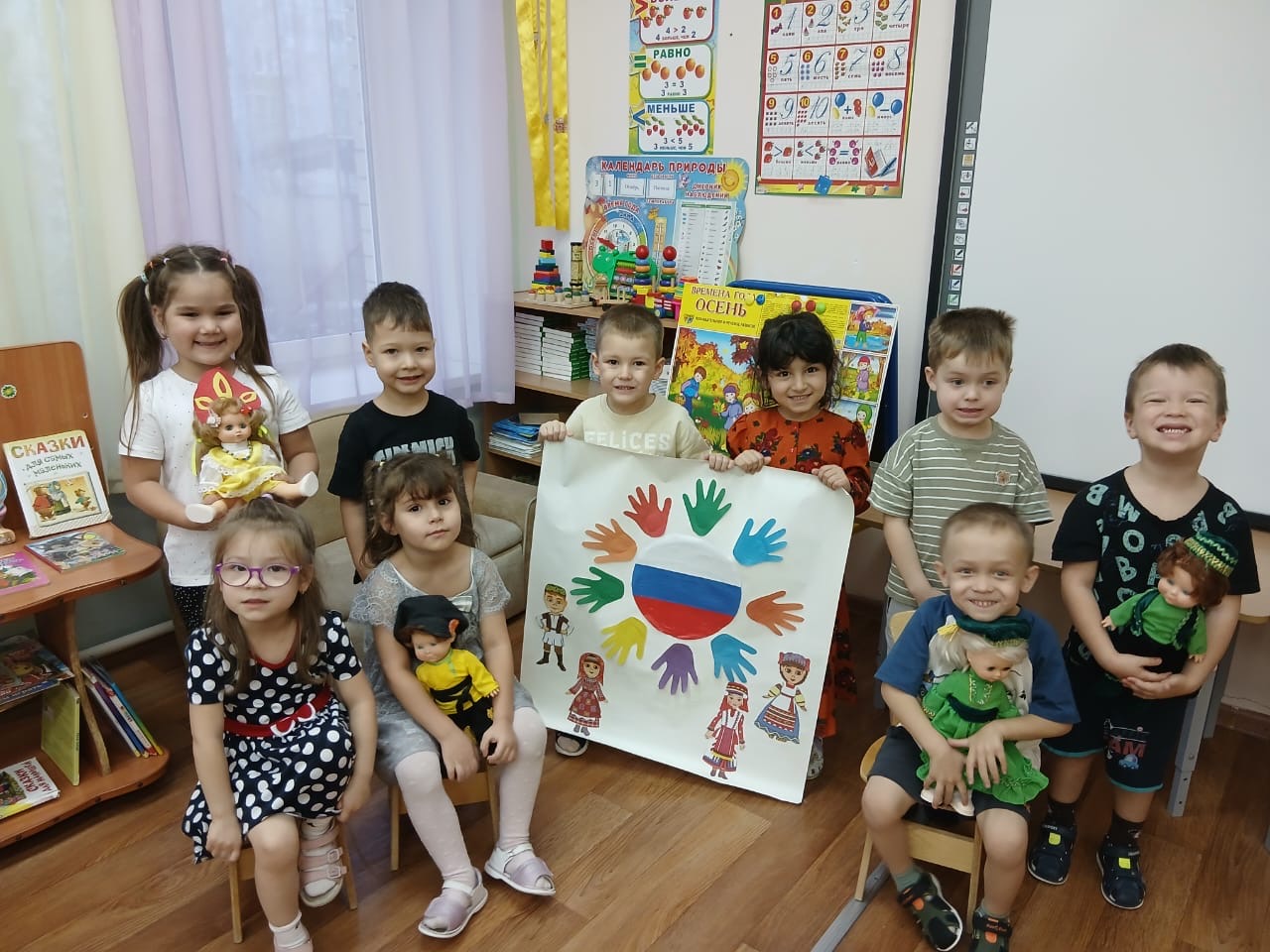 В День народного единства дети познакомились с историей и значением праздника, в игровой и творческой форме они мастерили коллективные плакаты, которые символизирует сплоченность и дружбу всех народов нашей страны. Ярким завершением праздника стали танцы и песни в народных костюмах. С Днем народного единства! Пусть в наших средцах всегда живут дружба и взаимопонимание!