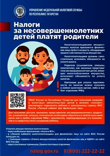 УФНС России по Республике Татарстан, в целях реализации информационной политики по информационно-просветительской работе с налогоплатильщиками , направляет информационную листовку: "Налоги за несовершеннолетних детей платят родители".