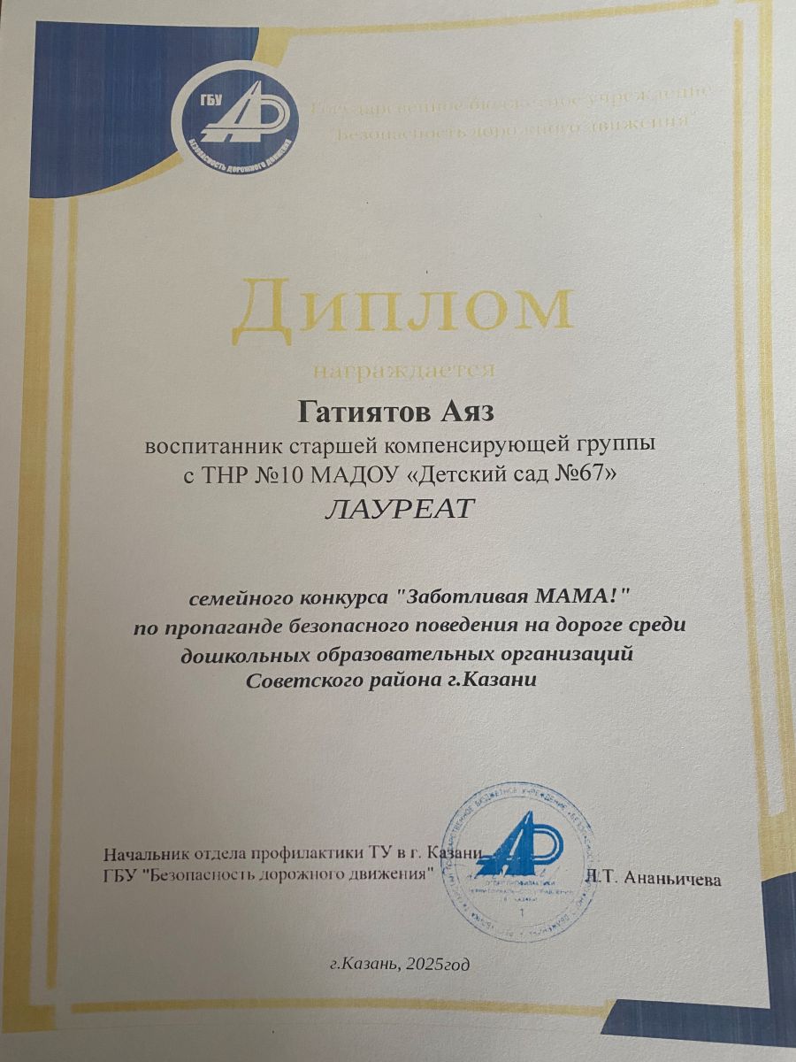 Муниципальное автономное дошкольное образовательное учреждение «Детский сад № 67 комбинированного вида с татарским языком воспитания и обучения» Советского района г. Казани