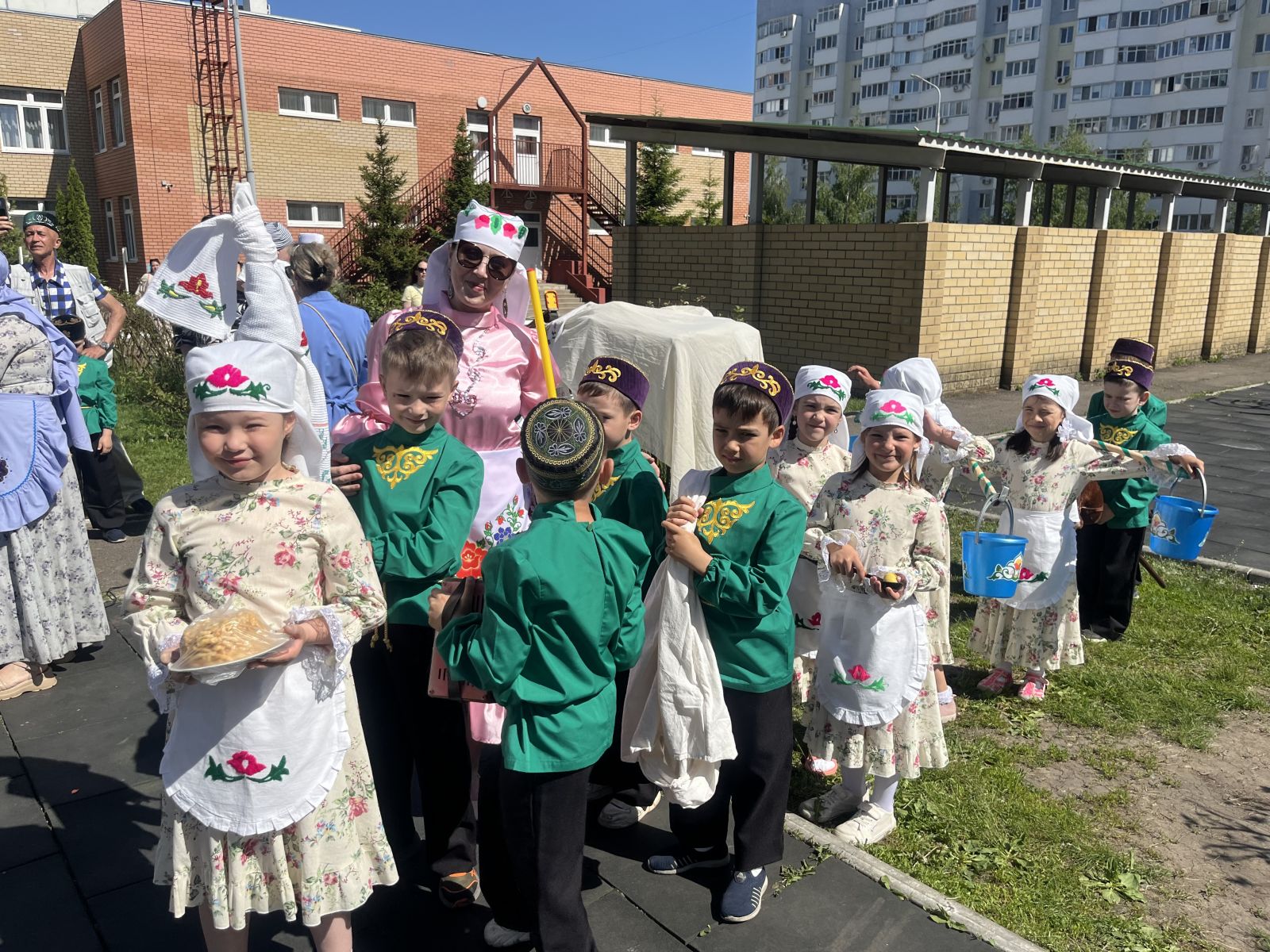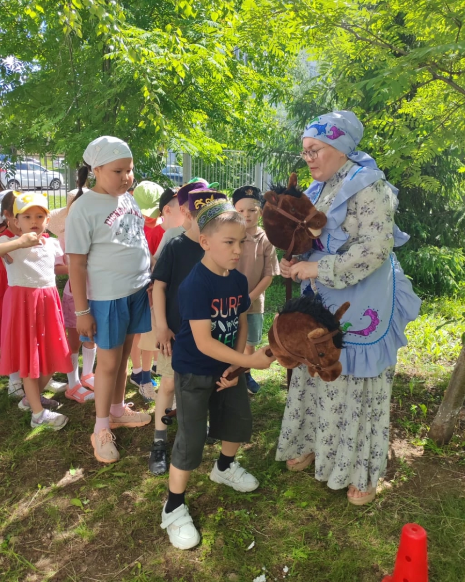 Сегодня в нашем детском саду прошёл долгожданный национальный татарский праздник - “Сабантуй». Праздник открыли стихами и песней “Сабантуйга барабыз”. Дети познакомились с татарскими народными играми: бег в мешках, разбивание горшка, бег с яйцом на ложке , скачки на лошадях и другие игры. Все игры сопровождались задорной музыкой. Детей порадовали подарки, участие в веселых играх и эстафетах. Праздник “Сабантуй” завершился весёлым татарским танцем. Было здорово, интересно, зажигательно!
