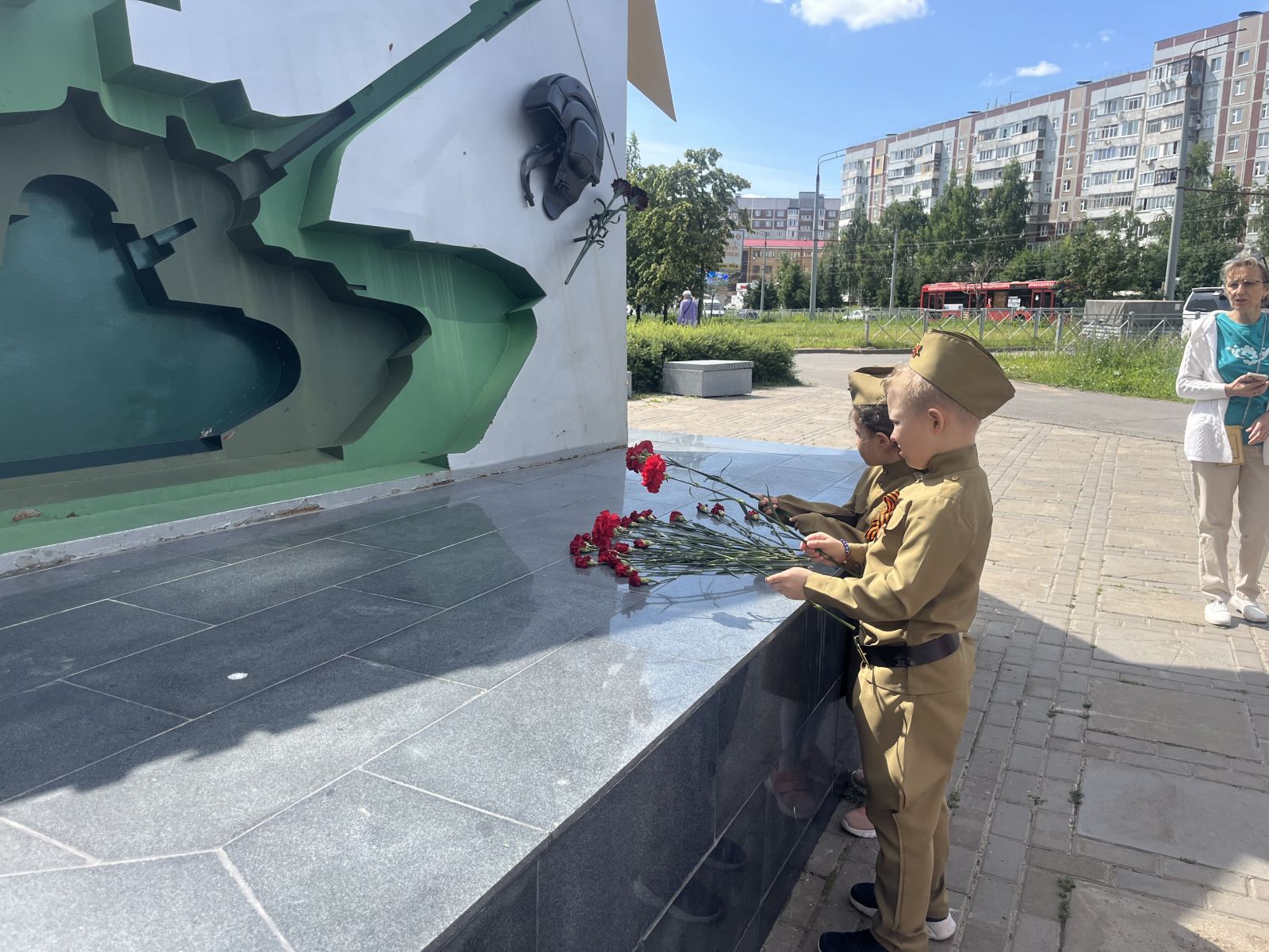 С особой торжественностью дошкольники возложили цветы к подножью памятника, почтили не вернувшихся с войны солдат минутой молчания.