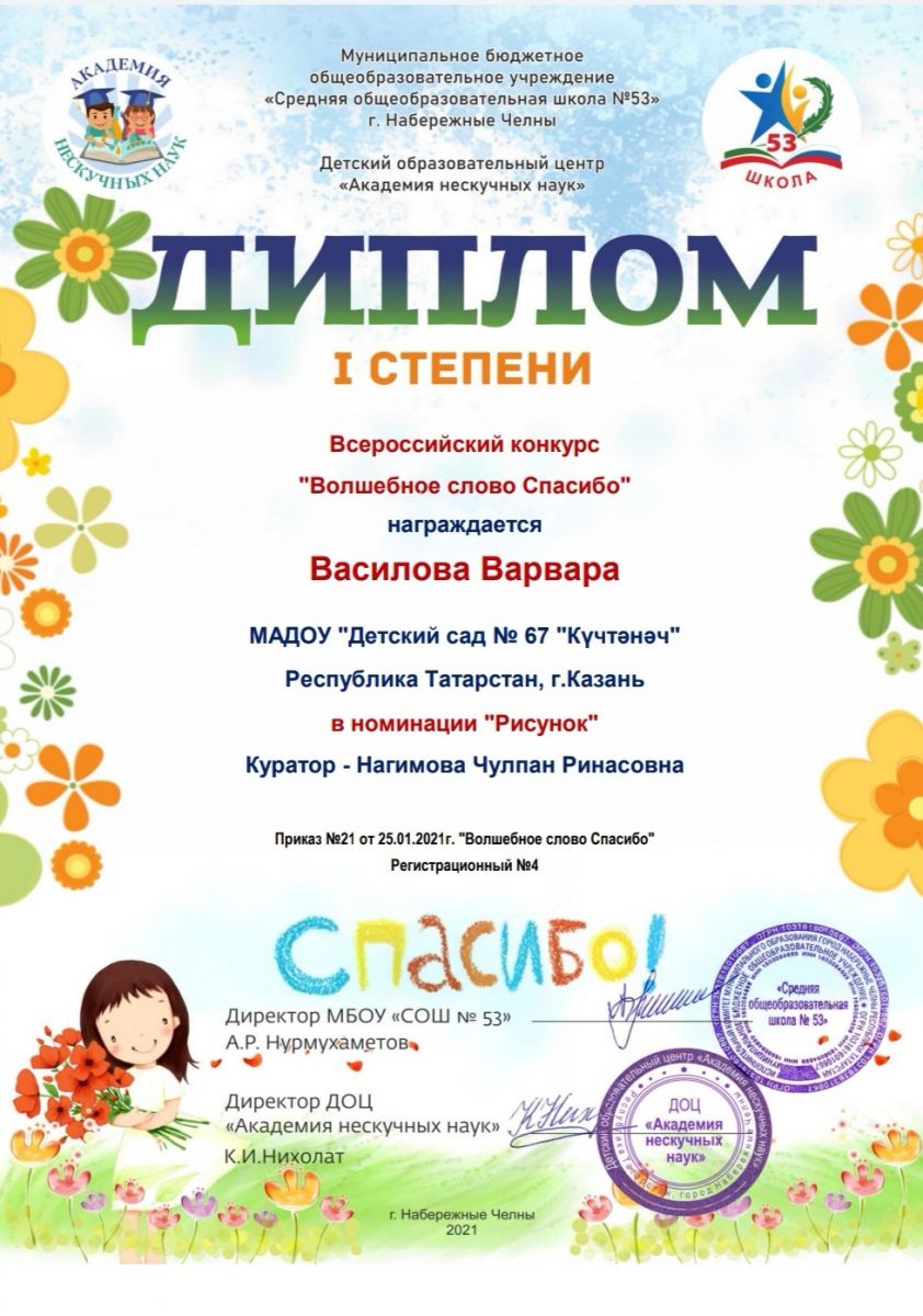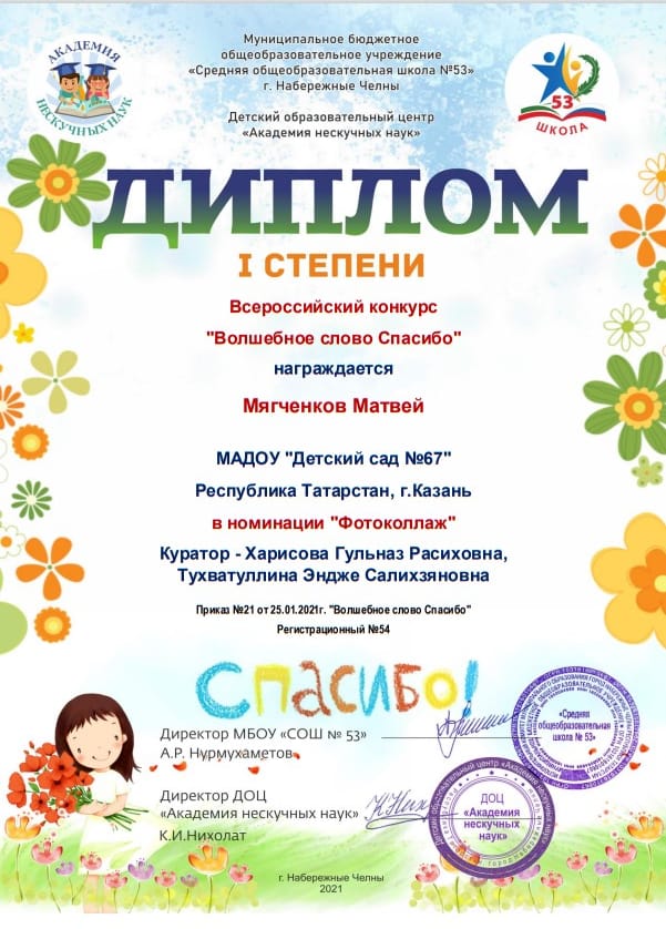Всероссийский конкурс "Волшебное слово Спасибо!" 08.02.2021