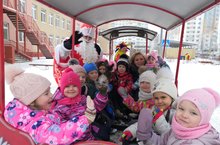 Сегодня на веселом, музыкальном паровозике из Ромашкино Дедушка Мороз прокатил всех ребят. Ребята успели прочитать стишки про Новый год, отгадывали загадки и просто веселились.