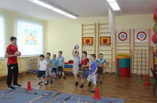 Тренер ДЮСШ ФК "Рубин" проводил занятия по ОФП с детьми подготовительных групп (6лет) для дальнейшего приглашения в команду.