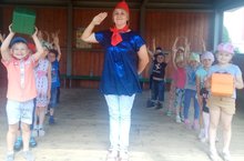 "День здоровья" 24.07.2020 «День здоровья» под девизом «Быть здоровыми хотим – помогает нам режим». День начался с утренней зарядки, которая помогла детям взбодрится и поднять настроении.Активно и весело прошёл спортивно – развлекательный досуг «Здоровье - это здорово!»