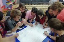Вторая часть педагогического совета прошла в форме деловой игры «Мозговой штурм». Педагоги решали кроссворды, обсуждали педагогические ситуации и пути их решений, соревновались в теоретических и практических знаниях данного вопроса.
