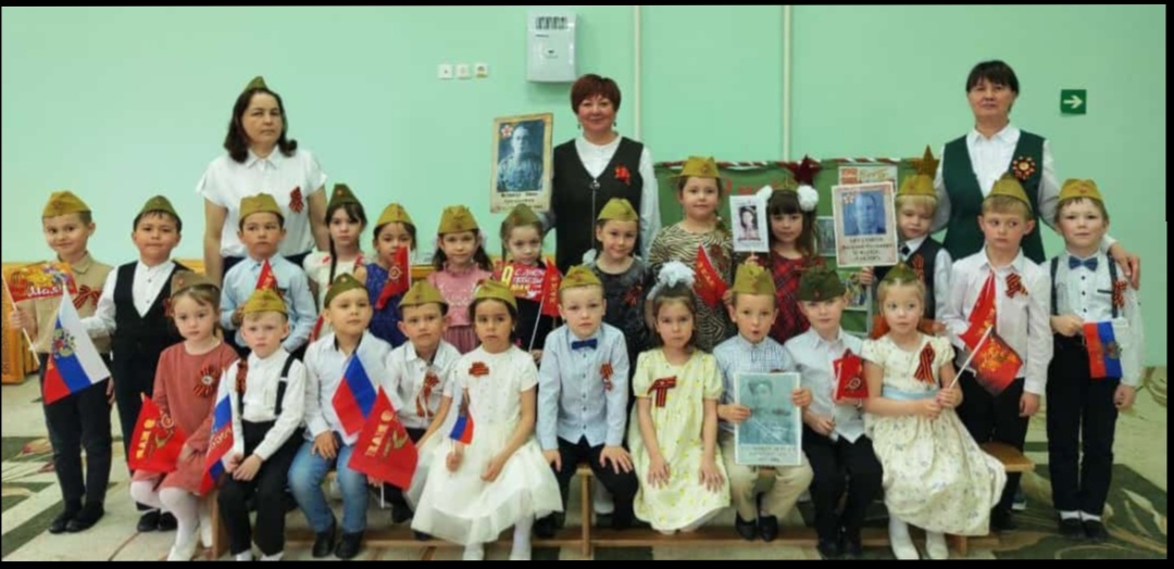 Чара ахырында балалар бакчасында тәрбияләнүчеләр «Үлемсез полк»акциясендә катнаштылар.9 мая-День Победы-священный праздник для каждого из нас, и мы, сегодняшние граждане нашей страны, должны передать память о победе будущим поколениям. Ежегодно в нашем саду проводятся мероприятия, посвященные Дню Великой Победы, и этот год не стал исключением. В преддверии 9 мая в детском саду прошел праздник, посвященный Дню Победы. Праздник был подготовлен с целью формирования у детей знаний о Великой Отечественной войне, повышения осведомленности дошкольников об истории своей страны, воспитания чувства гордости за подвиг народа, устойчивого интереса к армии. В программу мероприятия вошли песни о празднике Победы, о мире, о солдатах, танцы, стихи о войне, песни о бессмертном подвиге защитников Отечества.
