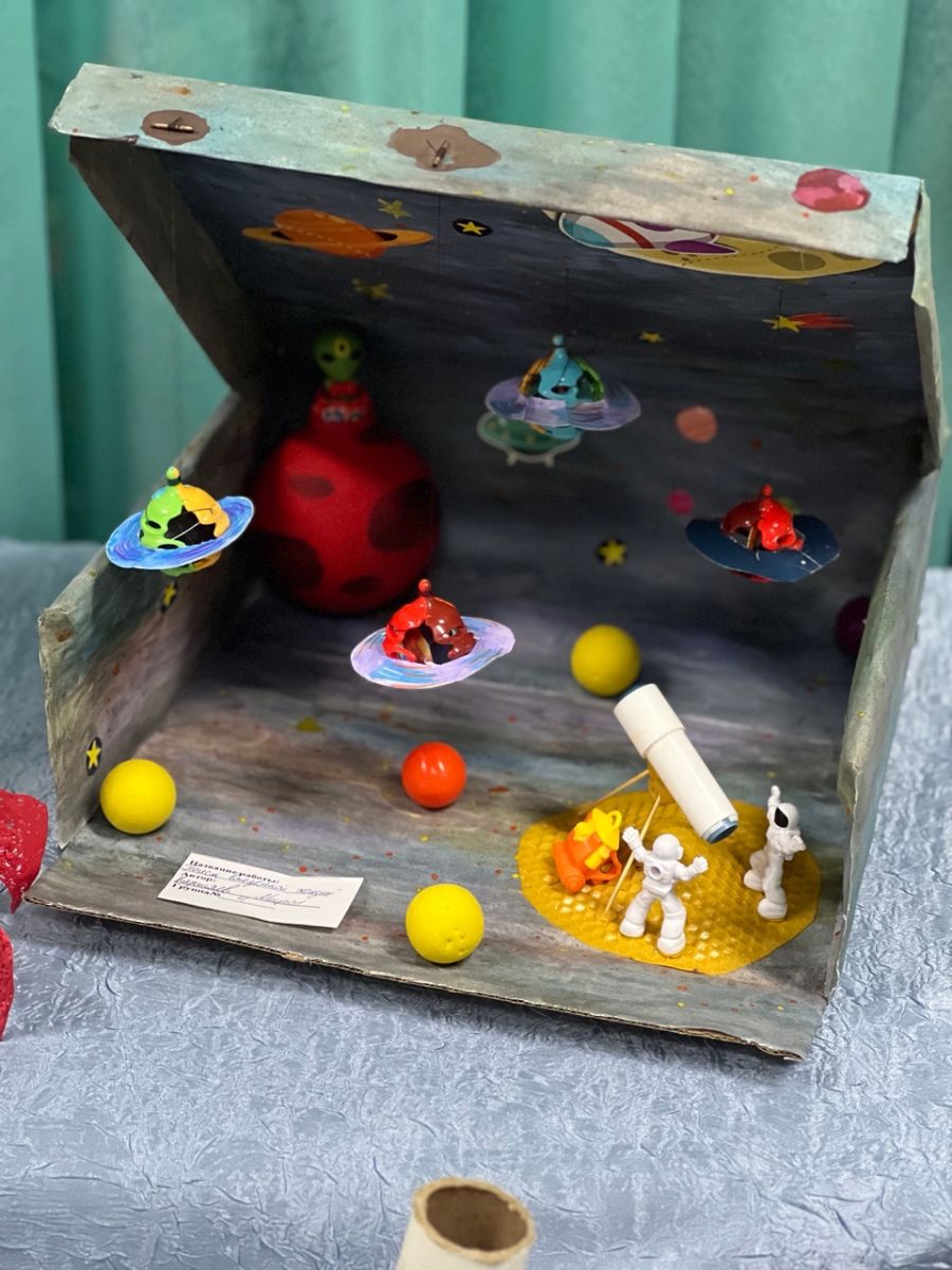 На выставке были предоставлены творческие работы по таким тематическим направлениям, как «Мир в недалеком будущем», «Профессия ученый», «Наука спасет планету», «Экспедиция на Марс» и др. Выставку украсили оригинальные поделки и рисунки, выполненные в различной технике: акварель, гуашь, пластилинография, паье - маше, техническое моделирование и т.д.