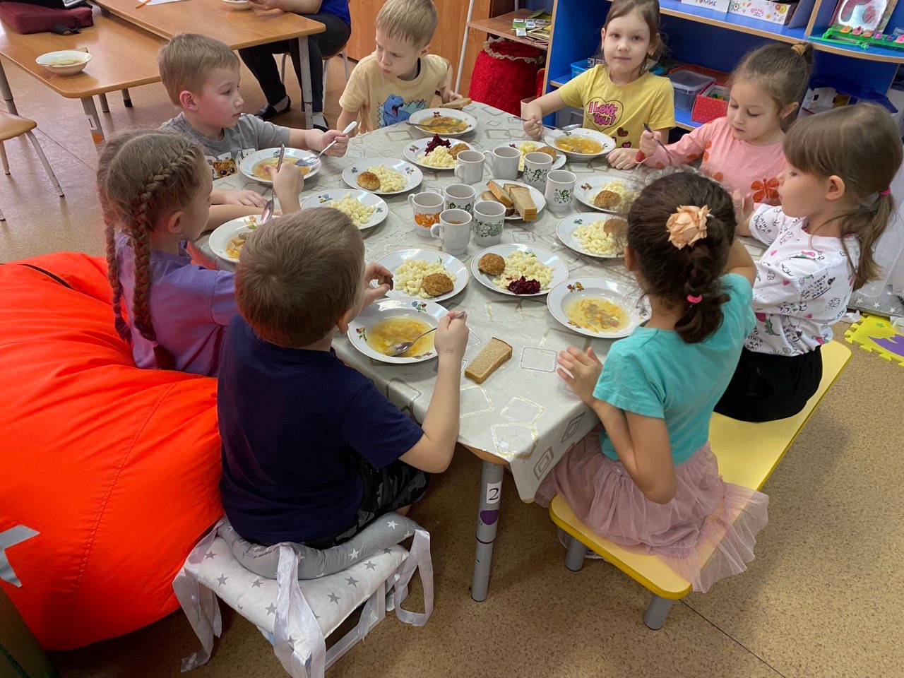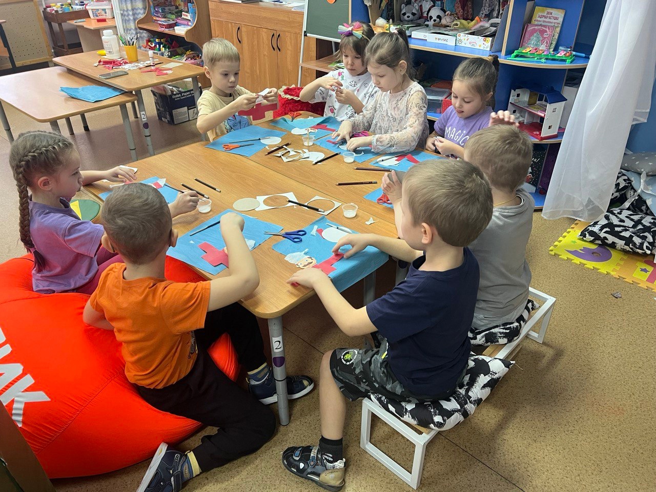 Дети занимались, играли, читали книги и даже смогли выполнить аппликацию без стульев