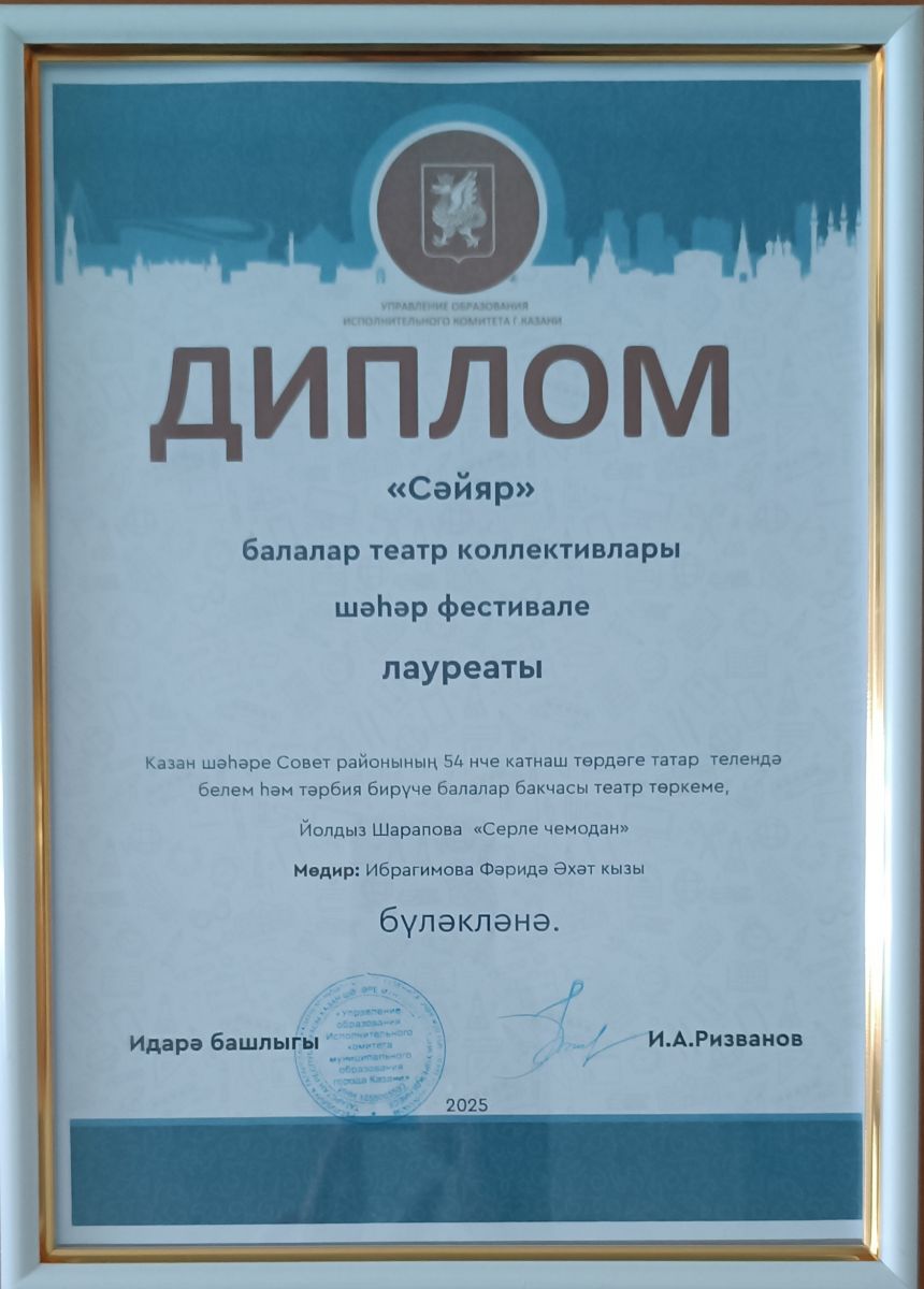 Балалар театр коллективларының шәһәр фестиваль - конкурсы "Сәйяр- 2025" нәтиҗәләре буенча бакчаның "Көнбагыш" балалар театр студиясе Лауреат исеменә лаек булды. 3 апрель көнне Г.Кариев театрында котлау тантанасы узды. "Көнбагыш" театр студиясенә һәм балаларны әзерләгән педагогларга зур рәхмәтебезне белдерәбез, иҗади уңышлар телибез!!! -