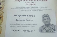 Район күләмендә үткәрелгән Мингол Галеев исемендәге "Җырчы сандугач" конкурсында 1 урын яулаган Фасихова Венераны һәм Юсупова Р.Р. җитәкчелегендәге "Көнбагыш" вокал ансамблен (2 урын) чын күңелдән котлыйбыз!!!