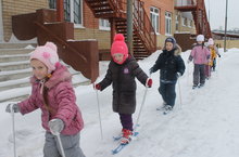 Дети нашего детского сада знакомятся с зимними видами спорта. Юные спортсмены катались сегодня на лыжах. Все зарядились хорошим настроением, здоровьем. Всем было радостно и хорошо!