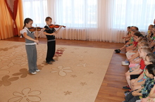 Воспитанники Детской музыкальной школы № 7 имени А.С.Ключарева представили дошкольникам концерт "В мире музыки". С большим интересом дети познакомились с маленькими музыкантами и инструментами (фортепиано, домбра, скрипка, флейта, аккордеон, гитара), прослушали представленные музыкальные произведения.
