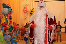Новогодние поздравления продолжаются. Сегодня к "Почемучкам" приехал театр кукол "Экият" со своим спектаклем "Снежный человечек в поисках солнца". Дети вместе с артистами играли в снежки, прыгали как зайчики и поздравляли друг друга "С Новым годом!".