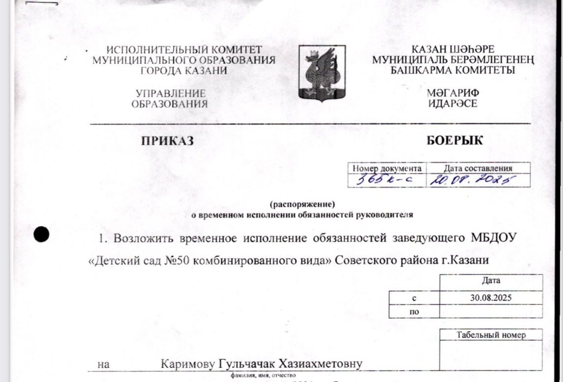 Руководитель: врио Каримова Гульчачак Хазиахметовна