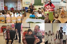 прослушать народные песни совместно со сказками, поиграть в народные хороводные игры, познакомиться с музыкальными инструментами и «помузицировать» на них.