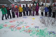 Рисовать на снегу любят все, без исключений - и взрослые, и детки. "Художественные творения" получаются весьма оригинальными, потому что рисунок, конечно, не такой четкий, как на листе бумаги, да и снег - не бумага. Рисование цветной водой или красками по снегу у детей вызывает восторг и радость. Вот какой рисунок создали наши воспитанники, представили что будет летом на этой полянке.