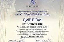 Младший ансамбль скрипачей «Жимешем» получил звание лауреата II степени на международном конкурсе -фестивале «Next.поколение-2021» 20.04.2021