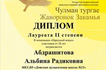 Поздравляем нашего замечательного педагога Абдрашитову Альбину Радиковна с победой во Всероссийскийском вокально-хороовом конкурсе "Жаворонок Закамья". Лауреат 2 степени в номинации народный вокал, Лауреат 3 степени в номинации академический вокал! Желаем дальнейших творческих успехов!