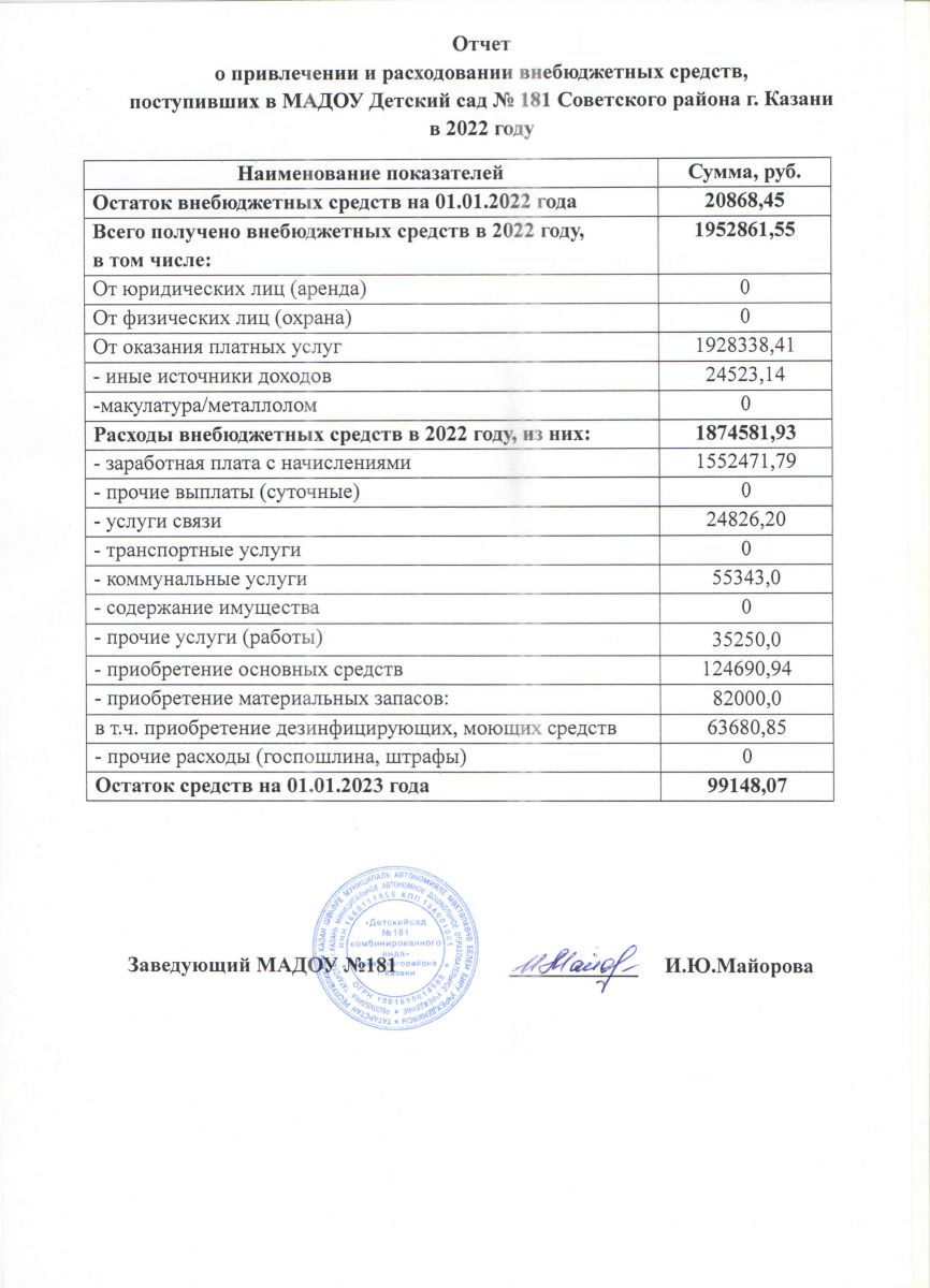 Отчет о привлечении и расходовании внебюджетных средств в 2022г.