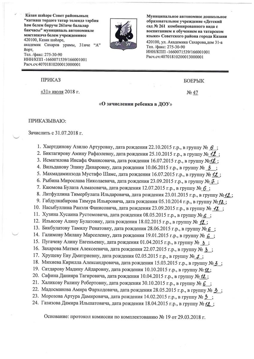 МАДОУ "Детский сад № 261 комбинированного вида с воспитанием и обучением на татарском языке" Советского района г. Казани