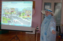 Цель: обучать детей правильно вести в себя в непогоду, обратить внимание детей к проблеме безопасности пешеходов, связанной с необходимостью повышения уровня внимательности при неблагоприятных погодных условиях и необходимости использования специальных светоотражающих элементов в зависимости от дорожных ситуаций на примере сказочных героев.