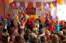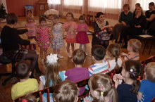 Ребятишек веселили музыкальные работники и воспитатели. Они подготовили яркое , веселое представление, а зрители-детишки стали непосредственными участниками праздника.