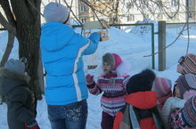 В детском саду стало доброй традицией проводить сезонную акцию "Полная кормушка". Дети и воспитатели ежедневно наполняют кормушки, которые еще осенью развесили на своих участках. Какой радостью горят глаза детей, когда к их кормушке слетаются воробьи и синички со всей округи! Давайте растить добро вместе!