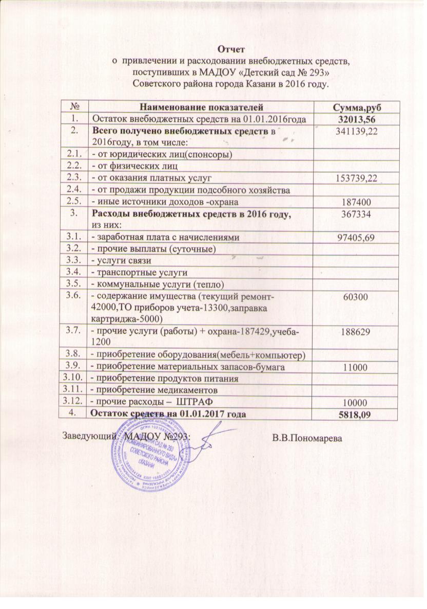 Отчет о привлечении и расходовании внебюджетных средств за 2016 год