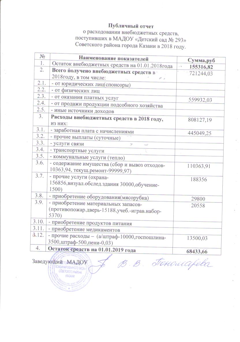 Отчет о расходовании внебюджетных средств за 2018 год