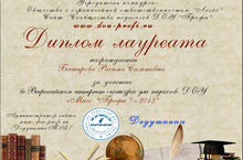 Наши воспитатели стали обладателями дипломов лауреата во Всероссийском интернет-конкурсе для педагогов ДОУ "Мисс Профи - 2013". Это - Сабирова Айгуль Марселевна - Диплом за 2-е место и Диплом лауреата,Баширова Расима Сагитовна, Гузаярова Алина Загидовна, Гарафиева Рита Ильясовна, Даутова Альбина Габдравефовна, Мингалиева Лейсан Миннулловна и Фазылзанова Лилия Рифкатовна.От души поздравляем их! 29.11.2013