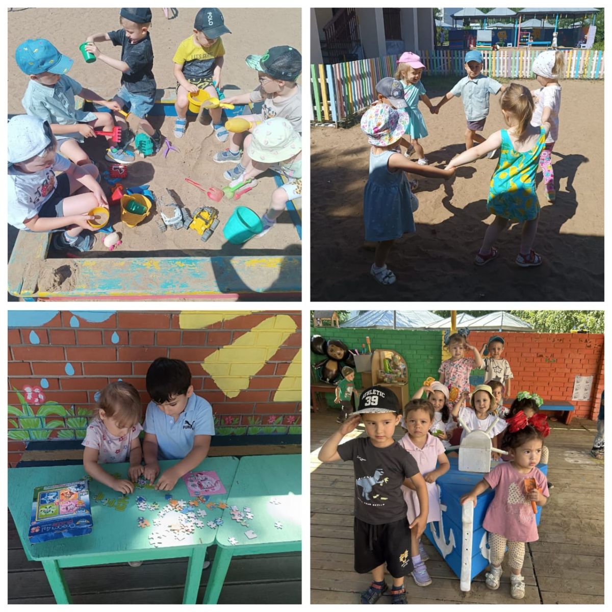 Во время летней прогулки в детском саду воспитанники находят массу интересных занятий: играют в мяч, в прятки и догонялки, строят замки из песка. Но самое главное — это свобода движения и общения. Летняя прогулка дарит ребёнку ощущение свободы и приносит целый мир новых ощущений и открытий.