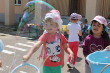 В рамках недели юмора и смеха в детском саду прошел праздник мыльных пузырей. Весёлые игры и мини-конкурсы вызвали у детей море положительных эмоций! Ребята научились получать мыльную пену и устроили соревнование «У кого пены будет больше». Старания детей оказались равными: мыльная пена у всех получилась просто загляденье. Восторженно и радостно ребята надували мыльные пузыри и соревновались в играх «Кто надует самый большой и самый маленький пузырь». Праздник получился весёлый, забавный, энергичный и завершился салютом из мыльных пузырей.