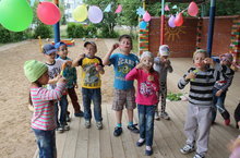 Сегодня наши ребята отправились в морское путешествие.У каждой команды был свое название и девиз.Путешествие выдалось очень увлекательным и веселым, с морскими песнями и танцами и даже с настоящим Нептуном и пиратами!Наши дружные команды победили пиратов в водном бою и прогнали их с корабля.Мокрые,но безмерно счастливые ребята вернулись из путешествия в детский сад.